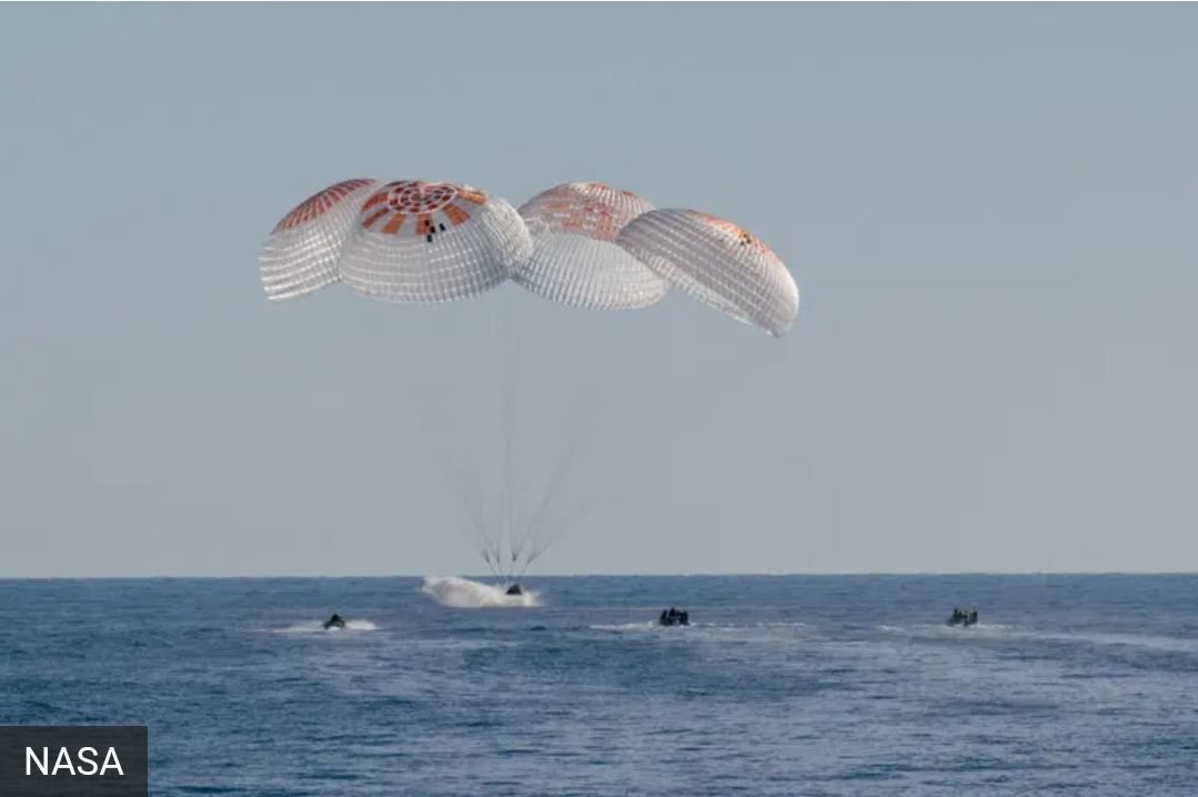 ड्रॅगन स्पेसक्राफ्ट उचलून क्रूला बाहेर करण्यासाठी साधारण तासाभराचा काळ लागला. मेडिकल चेकअप नंतर चार तासांत क्रू जमिनीवर परतेल. आणि अधिकची वैद्यकीय मदत लागली नाही तर क्रू नासाच्या विमानाने ह्यूस्टनला जाईल आणि हे अंतराळवीर कुटुंबीयांना – मित्रमंडळींना भेटतील.