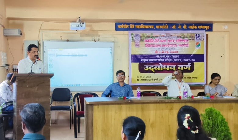 श्री मौनी विद्यापीठाच्या अधिपत्याखालील कर्मवीर हिरे कला, शास्त्र, वाणिज्य आणि शिक्षणशास्त्र महाविद्यालयात दिनांक ११ एप्रिल २०२५ रोजी बी.ए.बी.एड. (ITEP-NCET) या राष्ट्रीय पातळीवरील नवीन एकात्मिक शिक्षक शिक्षण अभ्यासक्रमासाठी उद्बोधन व मार्गदर्शन कार्यक्रमाचे यशस्वी आयोजन करण्यात आले. या कार्यक्रमाचा उद्देश विद्यार्थ्यांना NCET (National Common Entrance Test) परीक्षेचे स्वरूप, अभ्यासक्रम, तयारीचे नियोजन आणि संभाव्य करिअर संधी यासंबंधी सखोल माहिती देणे हा होता.