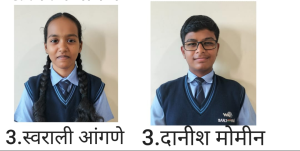 स्वरूप महेश आंगणे याने 93.20% गुण मिळवून प्रथम क्रमांक मिळवला. प्रणव अंकुश पाटील याने 92.60% गुण मिळवून द्वितीय क्रमांक तर प्रत्येकी 91.00% गुण मिळवून स्वरांगी आंगणे व दानीश मोमीन यांनी तृतीय क्रमांक मिळवला.