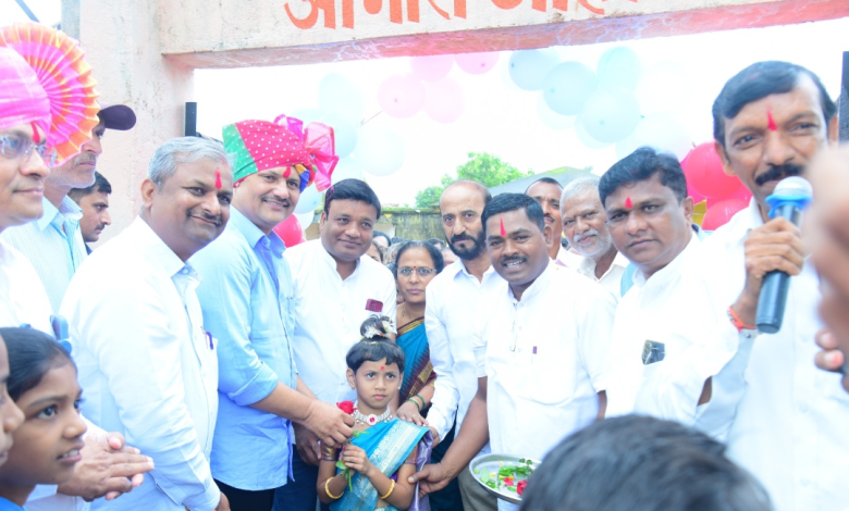 यावेळी तालुका संघाचे माजी चेअरमन अशोकराव भांदिग्रे माजी सरपंच किसनराव पाटील श्री पी एस कांबळे ग्रामपंचायत सदस्यश्रीकांत कांबळे डी जी गुरव नितीन पवार भास्कर तेलंग नितेश पाटील शहाजी कुपटे लिंगराज स्वामी शाळा व्यवस्थापन समितीचे अध्यक्ष संजय पवार नितीन कुंभार सुवर्णा कांबळे भिकाजी शेनवीबी आर पाटील मुख्याध्यापक रवींद्र एकल यांचे सह ग्रामस्थ पालक विद्यार्थी शिक्षक मोठ्या संख्येने उपस्थित होते .