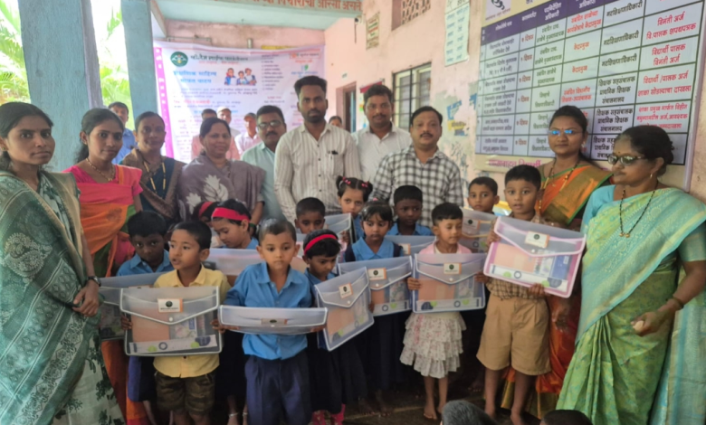 गरजू विद्यार्थ्यांसाठी मदतीचा हात; व्हिलेज फौंडेशनतर्फे देऊळवाडी शाळेत शालेय साहित्य वाटप