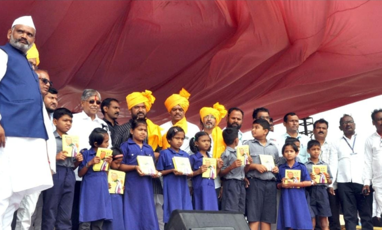 *कवठेमहांकाळ : तालुक्यातील नांगोळे येथे ‘देवाभाऊ केसरी’ बैलगाडी शर्यतीचे उद्घाटन पालकमंत्री चंद्रकांत पाटील यांनी केले. यावेळी त्यांच्या हस्ते विद्यार्थ्यांना वही वाटप करण्यात आले.