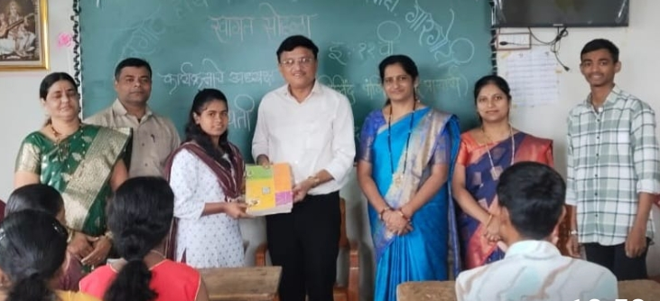 यावेळी इ.११ वी विद्यार्थ्यांचे अनोख्या पद्धतीने स्वागत करण्यात आले. गतवर्षी बारावी परीक्षेत गुणाानुक्रमे यशस्वी झालेल्या विद्यार्थ्यांचा सत्कार व पाठ्यपुस्तक वितरण करण्यात आले.
