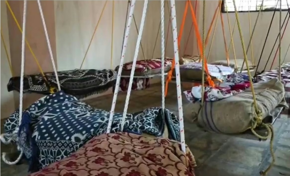 नवरातकरी पाळण्यावर छाती टेकवून आणि एक पाय वर घेऊन उभ्या उभ्या झोपतात