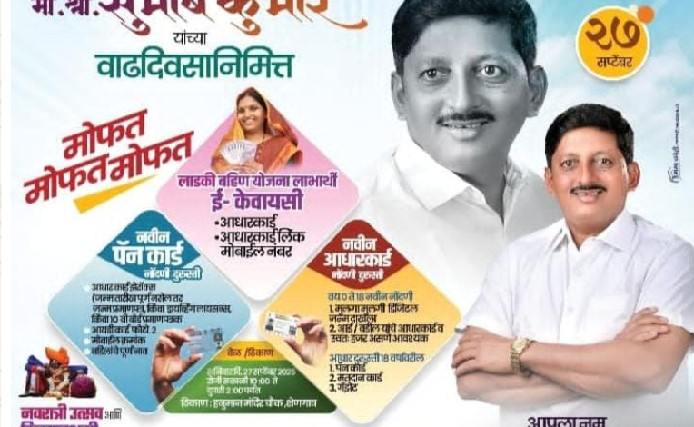 सुभाष कुंभार यांच्या वाढदिवसानिमित्त शेणगावमध्ये विविध नागरी सुविधांचा मोफत लाभ.