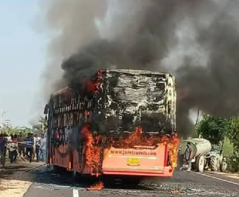 खासगी बसला आग लागून 19 जणांचा मृत्यू