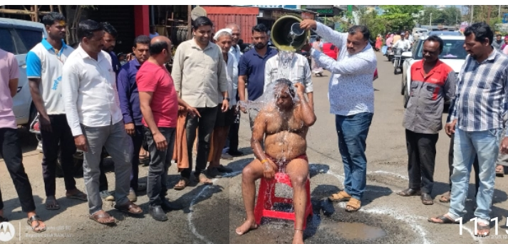 मनसेच्या जिल्हाध्यक्षांचे खड्यात आंघोळ करून आंदोलन! अखेर अनोख्या आंदोलनानंतर गडहिंग्लजला खड्डे बुजविले