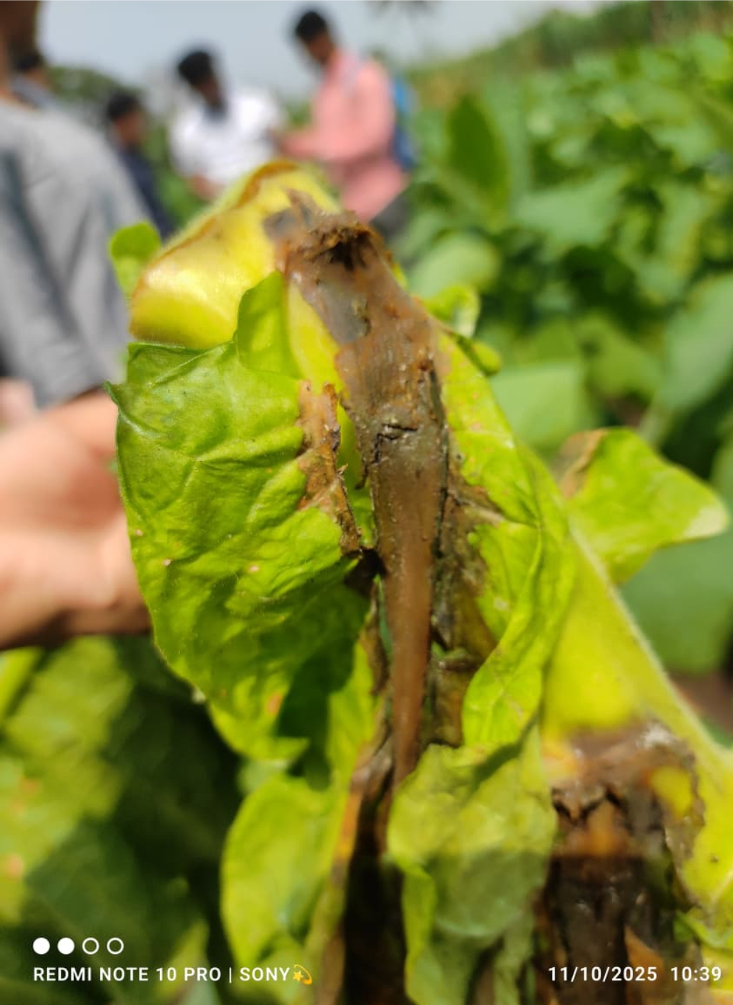 अकोळ व पांगीर परीसरात तंबाखू पिकावर खोड कुज रोगाचा मोठ्याप्रमाणात प्रादुर्भाव- प्रा. पी. डी. शिरगावे