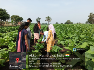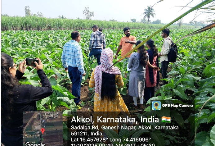 देवचंद महाविद्यालयातील शेती रसायने आणि कीड व्यवस्थापन विभागातील प्राध्यापक पी. डी. शिरगावे, सोनाली कुंभार, अमृता गोंधळी व शेती रसायने आणि कीड व्यवस्थापन विषयाच्या विद्यार्थ्यांनी अकोळ – पांगीर परीसरात तंबाखू शेतीमध्ये सर्वेक्षण केले असून, यामध्ये या परीसरातील तंबाखू पिकावर खोड कुज(सॉफ्ट रॉट) या रोगाचा मोठया प्रमाणात प्रादुर्भाव आढळून आला आहे.