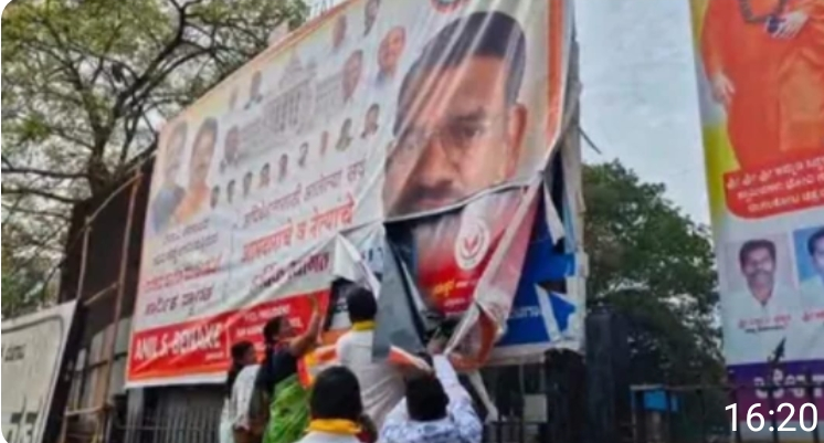 बेळगाव, येथील चन्नम्मा चौकात मराठी आणि कन्नड भाषेतून लावण्यात आलेले शुभेच्छा फलक कन्नडिगांनी फाडले. यावेळी पोलिस या ठिकाणी उपस्थित होते; मात्र त्यांनीही बघ्याची भूमिका घेतल्याने पोलिसदेखील कन्नड संघटनांना पाठीशी घालत असल्याचे दिसून येत आहे.