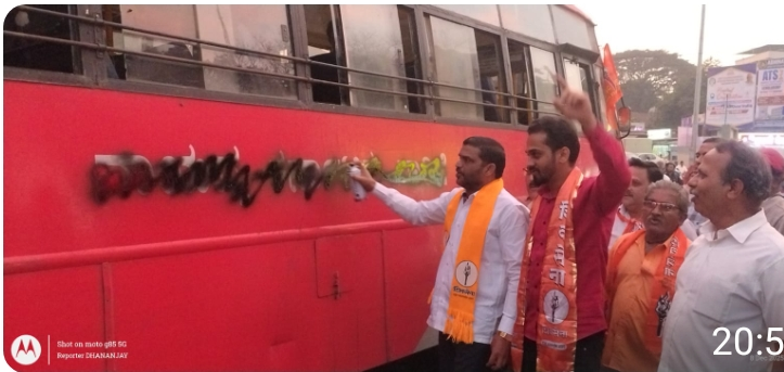 गडहिंग्लज बसस्थानकावर शिव सैनिकांचा राडा; कर्नाटक बसला फासले काळे!